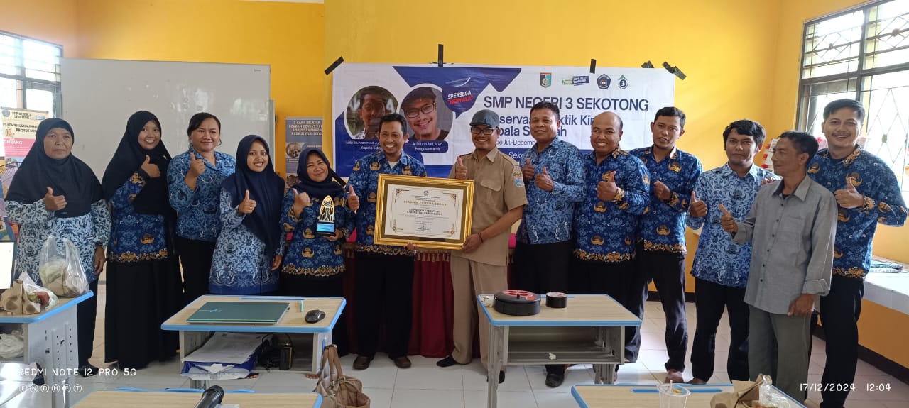 Penghargaan ini diterima langsung oleh bapak kepala SMPN 3 SEKOTONG yaitu Lalu Muhammad Junaidi, S.S, MPd. Semoga penghargaan ini dapat menjadi motivasi bagi SMPN 3