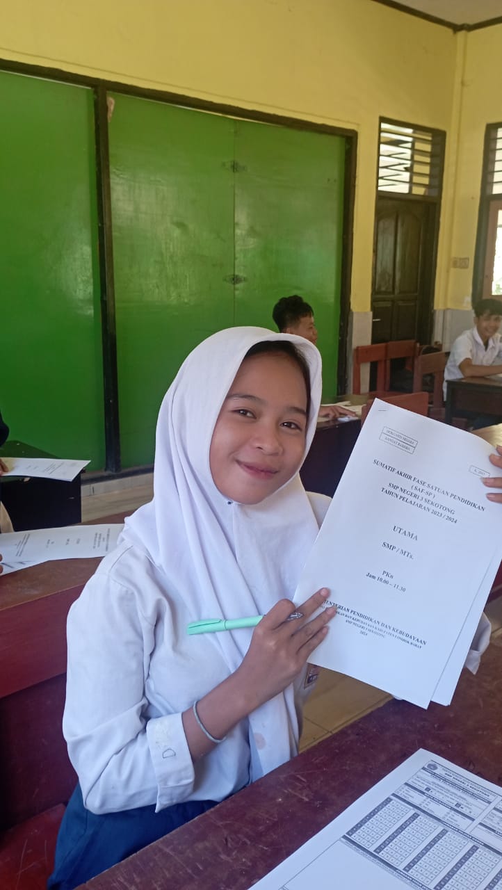 Kegiatan Sumatif Akhir Fase Satuan Pendidikan (SAF-SP) untuk kelas IX tahun ini di SMPN 3 Sekotong dilakukan selama 6 hari yaitu mulai hari Senin 13 Mei sampai Hari Sabtu 18 Mei tahun 2024 sebagai mana jadual yang telah di share di pengumuman sebelumnya. Pada tahun ini jumlah siswa yang mengikuti kegiatan ini adalah 27 siswa yang terbagi menjadi dua ruangan. Boleh dikatakan ini adalah tahap teraKhir yang harus di lalui oleh anak anak kami kelas IX sebelum mereka lulus dari Sekolah ini. Terlihat siswa siswa mengerjakan dengan semangat dan penuh senyum. Semoga Para siswa diberikan kesehatan dan kelancaran dalam melaksanakan kegiatan ini dan mendapat hasil yang memuaskan...