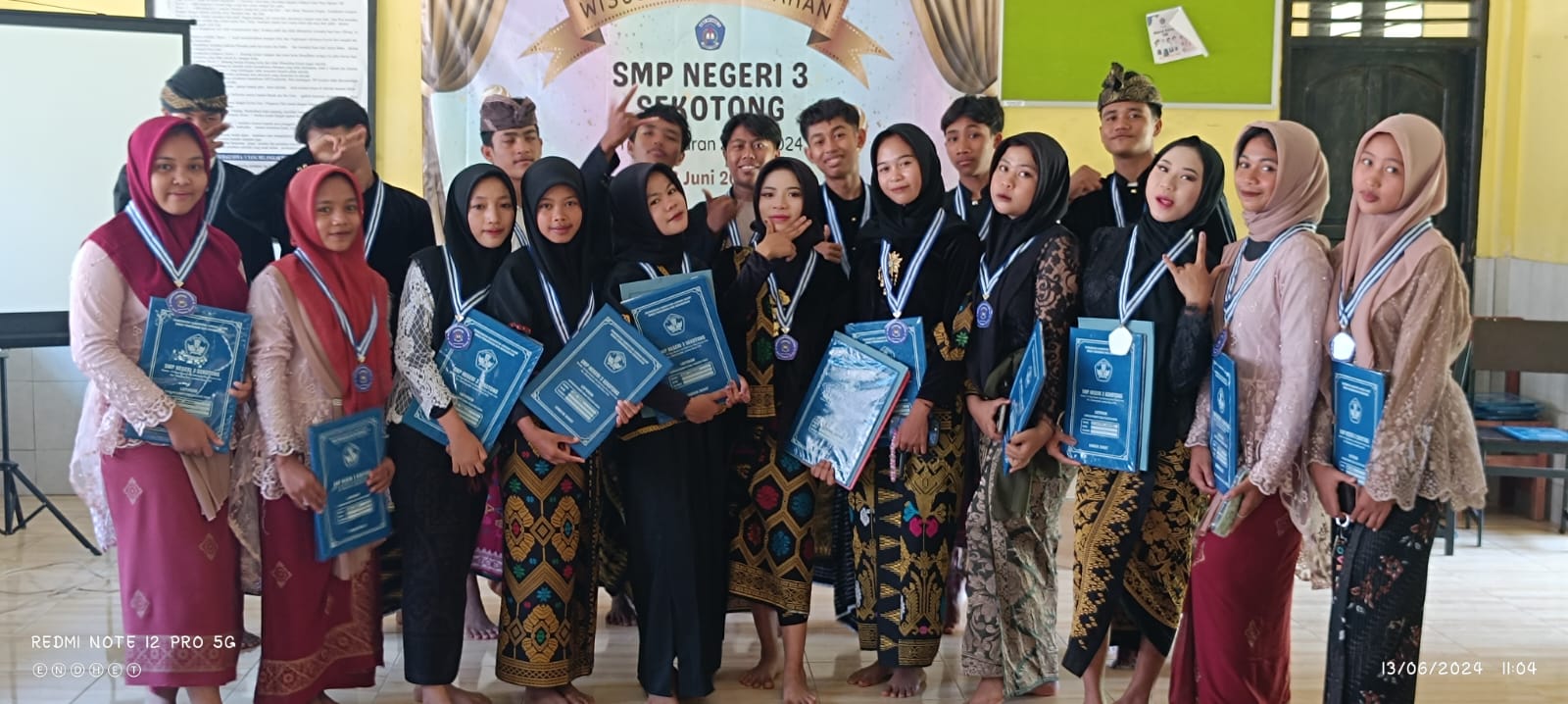 Alhamdulillah seluruh siswa/i Kelas IX tahun ajaran 2023-2024 SMPN 3 SEKOTONG LULUS 100% dari 27 orang siswa dengan jumlah nilai tertinggi diraih oleh