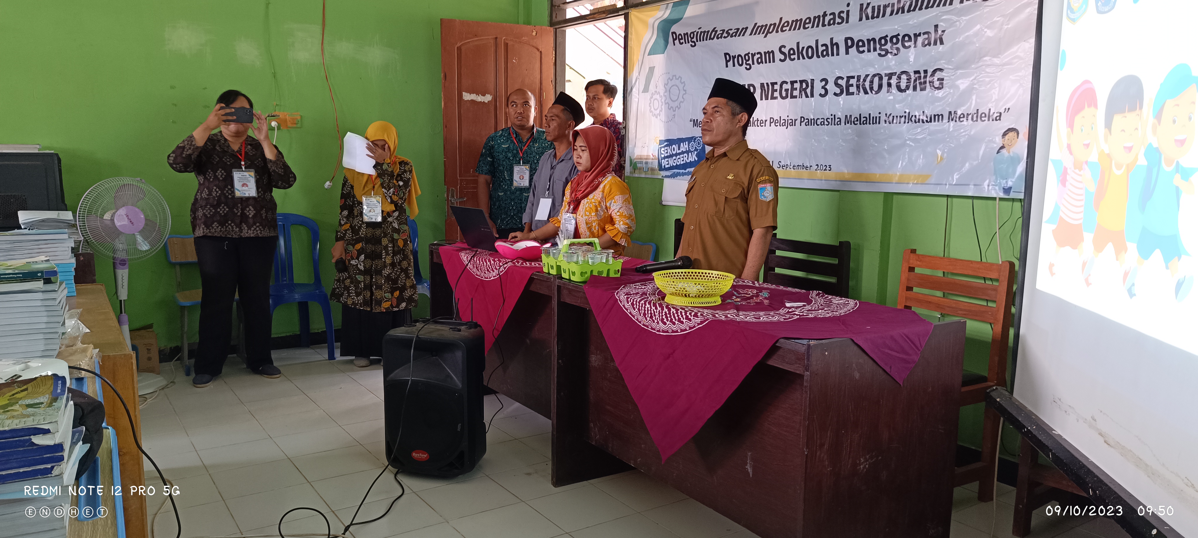 Pengimbasan PSP tanggal 9 Oktober 2023 dilaksanakan di SMP Nergeri 4 Sekotong. Setelah ditunda karena adanya jadwal pengambilan Sumpah Jabatan Fungsional, pada akhirnya Bapak Firdaus, S.Pd memberikan kami kesempatan untuk berbagi praktik baik tentang program sekolah penggerak baik dari segi implementasi Kurikulum Merdeka sampai dengan pelaksanaan program P5 yang ada di SMP Negeri 3 Sekotong. Kegiatan pengimbasan disambut hangat oleh Bapak/ibu guru serta TU, hal tersebut terlihat dari antusiasme peserta pengimbasan saat berdiskusi dalam pembahasan P5. Semoga program yang ada di SMP Negeri 3 Sekotong bisa menjadi contoh bagi implementasi kurikulum merdeka di SMP negeri 4 Sekotong.